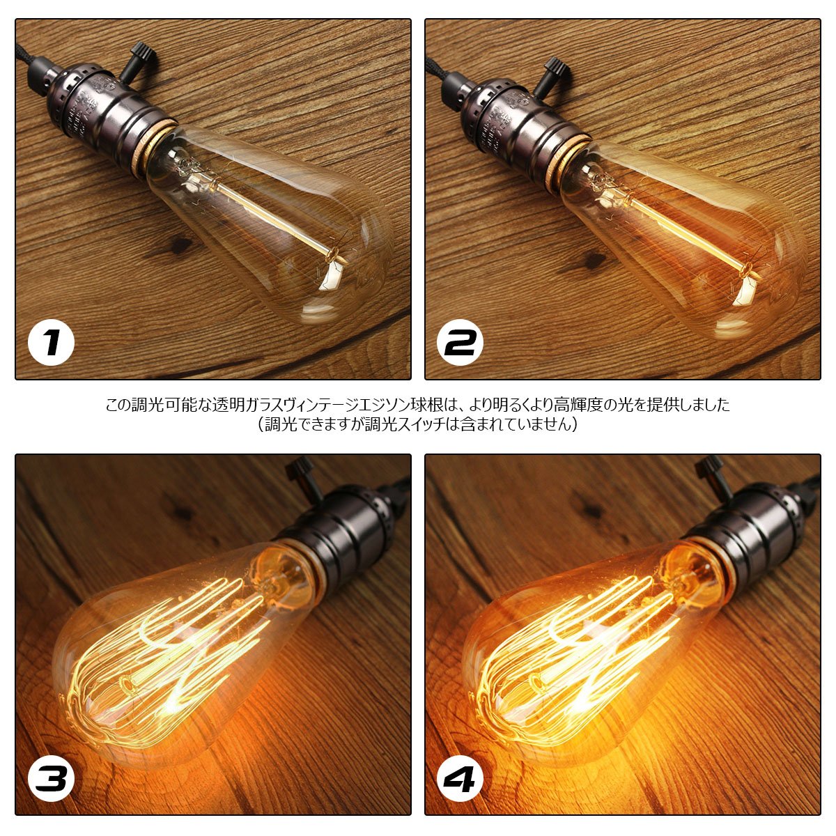 These dimmable clear glass vintage Edison light bulbs provided much brighter and more useful light (you can dim the dimmer switch, but the dimmer switch is not included).