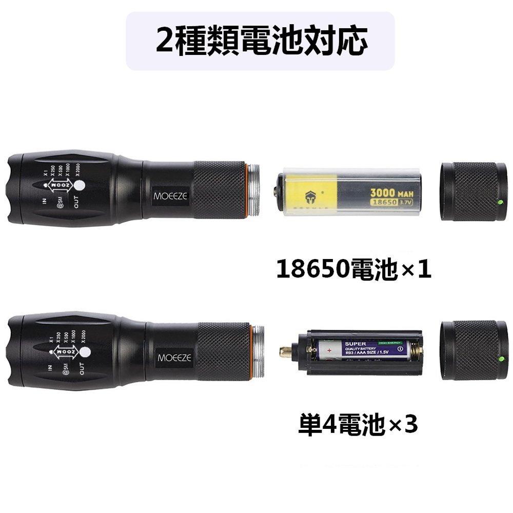 Supported batteries: 3 AAA batteries / 18650 batteries
