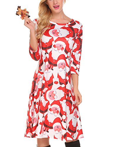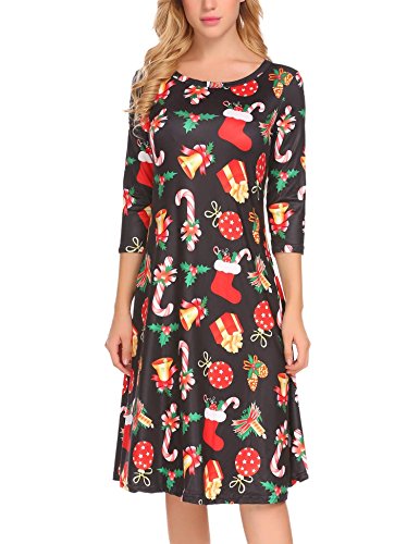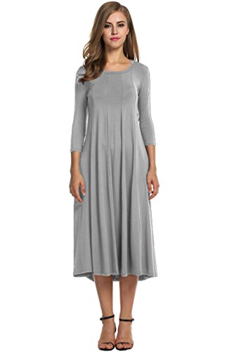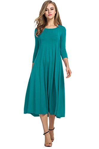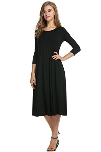 O-neck 3/4 sleeve tunic dress, solid pattern and mid-calf length.