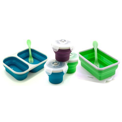 -. Feature : Food Grade, BPA Free Silicone / Dishwaster, Freezer, Microwave Safe (do not heat cover) / Collapses Down For Easy Storage & Carrying / Multi-Use Spork Included / Single-Compartment Size Holds Up To 4 Cups of Food