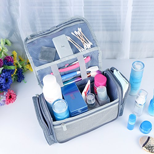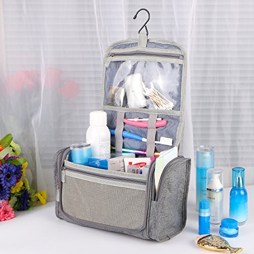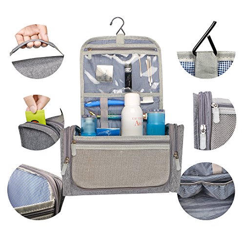Mesh Pockets - for structured sections and to locate things easily. Sturdy Hook - allows you to hang it anywhere convenient to you. High Quality Zippers - won't break quite easily. Huge Size(L * W * H) -11.8 x 7.1 x 5.1 inch. Material - Polyester with cotton