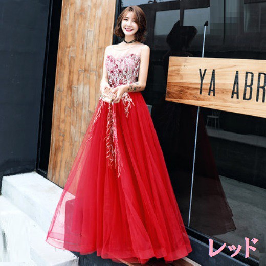 ふわっとひろがるスカートが華やかなロングドレスです。