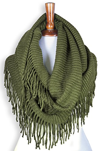 (BASICO)/Accessories/Scarves/DIRECT FROM USA/Basico Women Winter Warm Knit Infinity Scarf Tassels Soft Shawl Various Colors (G70 Khaki Green)