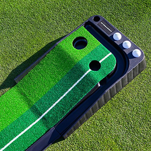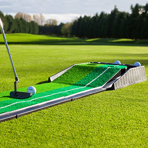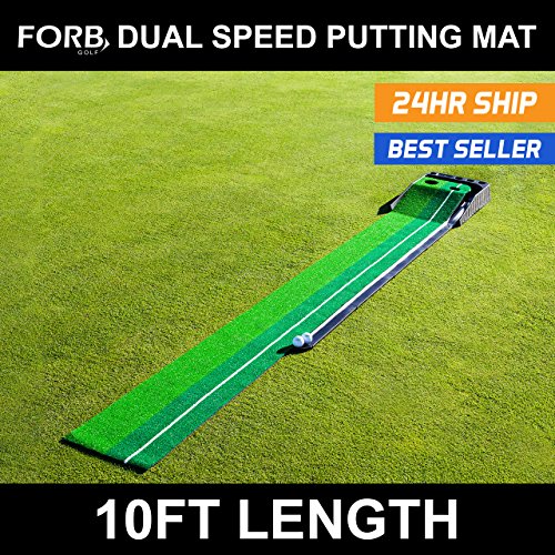 FORB Duel-Speed Putting Mat Trainer - The Perfect Practice Tool For Putting Below-par putting technique can dampen any performance. Take to the green with confidence by mastering your putting technique using this dual-speed putting mat. Not all greens are the same - the putting mat comes with two textures to replicate the feel of two completely different greens. There's no need for your vital putting practice time to be interrupted, as the fully extendable and simple to move dual-speed putting mat is suitable for both indoor and outdoor use. Play goes on with your personal putting mat whatever the weather! Thanks to the integrated ball return system, the monotonous practice of collecting your ball post-putt is a thing of the past. The mat is 10ft in length and 1ft in width. INCLUDES: 1x base, 1x ball return rack, 1x putting mat plus a ball holder for three balls and a gold club holder The extended FORB golf range includes a variety of high-quality products. 0 |