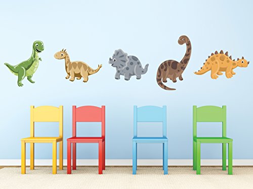 Dinosaur Fabric Wall Decals in Neutral Colors, Set of 5 Adorable Dinosaurs with T-Rex, Brontosaurus, Triceratops, and More, Non Toxic, Reusable and Repositionable
