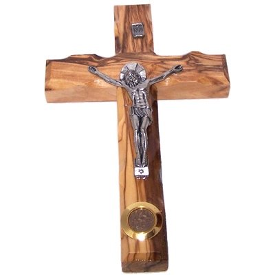 Med. size Latin Crucifix from Bethlehem - Olive wood (16cm or 6.4 inches).