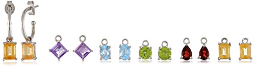 -. Binding : Jewelry -. Brand : Amazon Collection -. Department : women -. Feature : Sterling silver C-hoop earrings featuring five sets of interchangeable gemstone dangles: emerald-cut citrine, P.R.Incess-cut amethyst, oval blue topaz, round peridot, and teardrop amethyst. / The natural properties and composition of mined gemstones define the unique beauty of each piece. The image may show slight differences to the actual stone in color and texture / Imported -. Label : Amazon Curated Collection -. Manufacturer : Amazon Curated Collection -. Model : SEEW5004 -. ProductGroup : Jewelry -. ProductTypeName : FINEEARRING -. Publisher : Amazon Curated Collection -. Studio : Amazon Curated Collection -. Title : Sterling Silver Hoop Earrings with Five Pairs of Interchangeable Gemstones