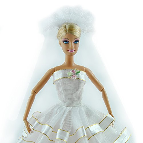 - Feature : Handmade Wedding Evening Party Dress / Clothes Gown With Veil For Barbie Dolls / Birthday party For Barbie Dolls / White Barbie Gown Dress / Evening Party Dress Gown Veil
