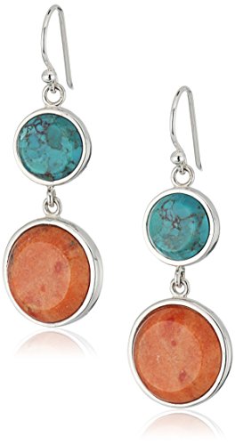 -. Title : Barse Sterling Silver, Turquoise and Orange Sponge Coral Drop Earrings