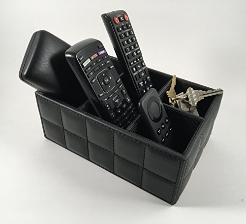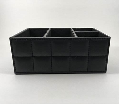 TickinTidy 4-Slot Wooden and Leather Table Storage Box Mobile Phone Makeup Cosmetics Box Case Holder Organizer (Black Checker)