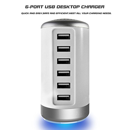 -. Feature : Support 6 devices at the same time charge, according to charging equipment, automatically adjust the output power,support for all kinds of mobile phones, MP3, MP4, camera, iPod, Iphone Flat PC and more / The charging station combines all your charging needs into one simple neat charging location. The USB hub also has a rubberized bottom in order to ensure stability even when using all 6 USB ports. / The Tower Charger puts out 30 Watts and 6 Amps total. The ports safely & dynamically alter charge output for the most efficient charging times. protocols.3 D+/D-1.2V pattern / The Tower Charger is also a great travel charger option as it is capable of handling either 110v or 240v. Despite its powerhouse charging ability it is easily portable due to its small size - 4.1" x 2" x 2" / 100% MONEY BACK GUARANTEE: If you are not satisfied with our product,let us know and you will be offered a full refund or replacement. Enjoy this absolutely RISK FREE purchase by clicking the yellow Add to Cart button.