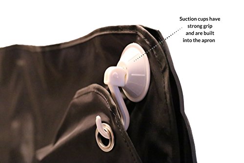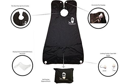 PREMIUM QUALITY: Our beard bib comes with built-in suction cups that have superior grip. It can easily attach and detach from any smooth surface especially mirrors. Velcro neck straps accommodate neck size up to 21 inches. Built-in grommets allow you to attach the apron to the hooks on the suction cups in case you need to step away from your grooming session.