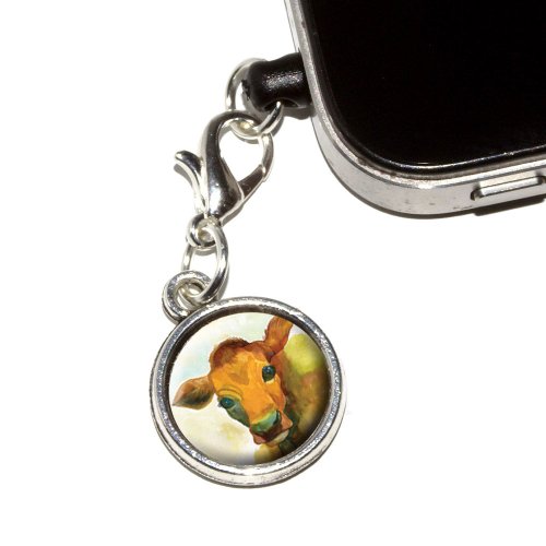 Graphics and More Watercolor Cow Yellow Orange Anti-Dust Plug Universal Fit 3.5mm Earphone Headset Jack Charm for Mobile Phones - 1 Pack - Non-Retail Packaging - Antiqued Silver
