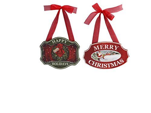 Young's Wood Holiday Plaque 2 Piece Set, 6.75"