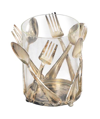 - Glass votive fitted in a metal frame creates an attractive and unique utensil holder