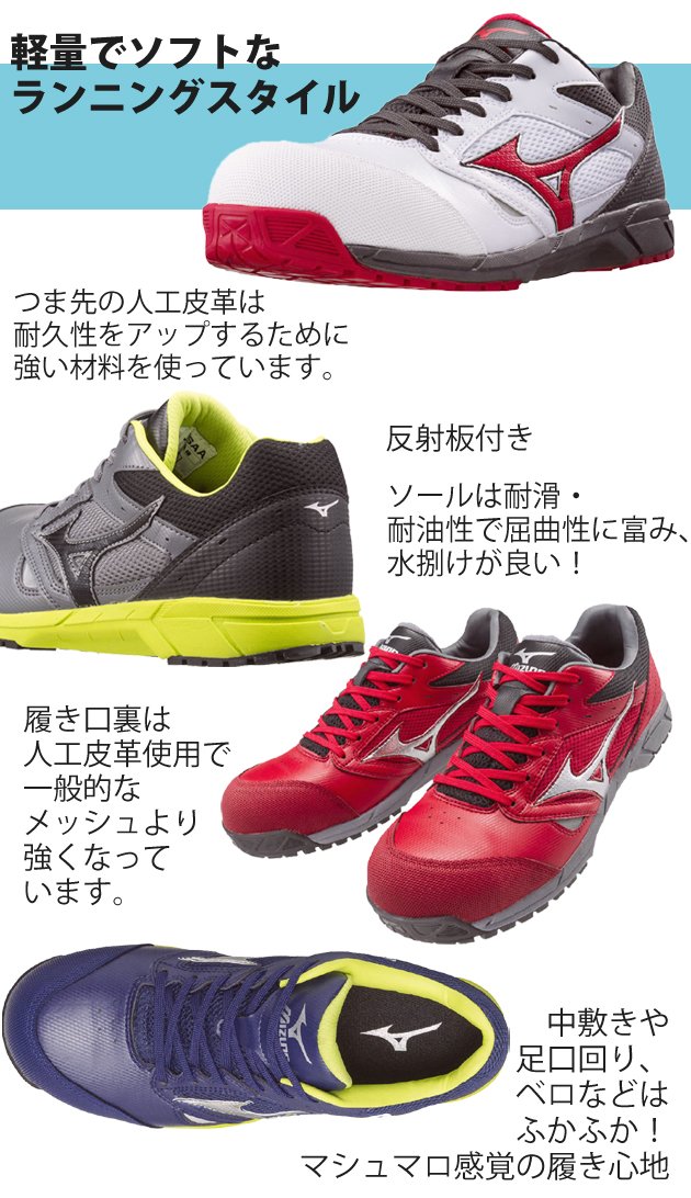 From sportsmaker Mizuno, lightweight and soft running style safety shoes