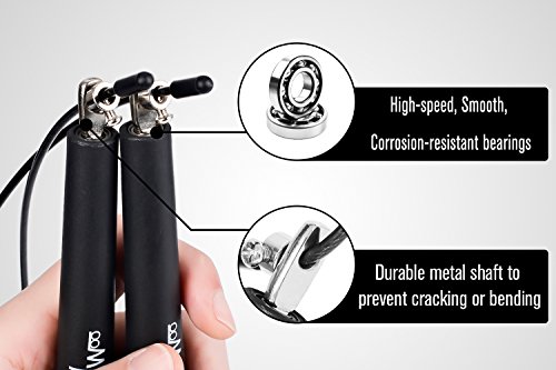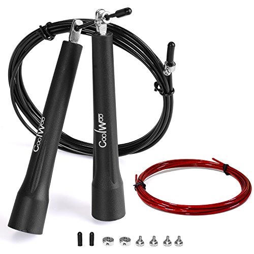 Studio : Coolwoo Publisher : Coolwoo Binding : Misc. Product Description Never mind who you are and where you from, Coolwoo speed jump rope devotes itself to you in its whole life as the time you choose it. If you wanna be fit, swing the Coolwoo skipping rope, burning calories right now. If you like speed, spin the Coolwoo skipping rope, enjoy what you get. With super long wire and smooth PU coating for double-under or even triple-under, the skipping rope features with steel bearing for fast swiveling, and lightweight which make you feel the rotation and control the rope, but not tire you out. 0