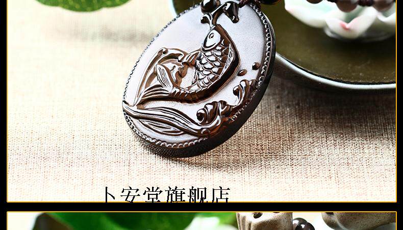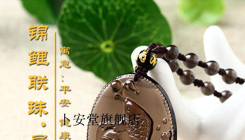 开光尊选款属鸡吉祥物龙鲤镇宝锦鲤联珠吊坠冰种黑曜石项坠