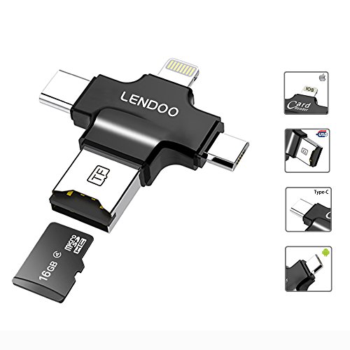 -. Title : LENDOO カードリーダー iPhone iPad用 4 in 1 microSDカードリーダー アダプター外部 ストレージメモリ拡張 ライトニング・コネクタ付き 16GB microSDHCカード 贈る