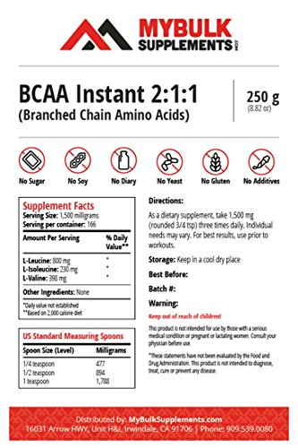 ReleaseDate : 2017-08-01 Studio : ADA (US) Corp Publisher : ADA (US) Corp Binding : Health and Beauty Product Description BCAA (Branched Chain Essential Amino Acids) Powder Unflavored Verified Pure 2:1:1 Instantized Formula Pre Post Workout Aid (1 kg / 2.20 lb / 35.3 oz) 0