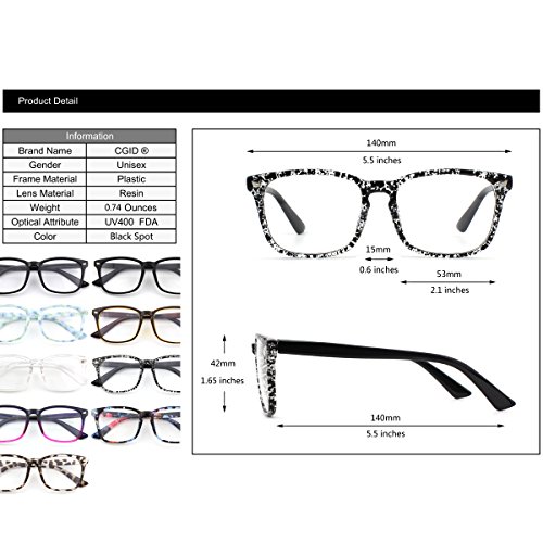 -. Feature : 1.Oversized Horned Rim Style Frame / 2.Vintage Inspired Design / 3.Glasses include a waterproof bag and microfiber cleaning cloth / 4.Plastic Frame and Plastic Lens / 5.Lens Width:53mm Bridge:15mm Frame Total:140mm