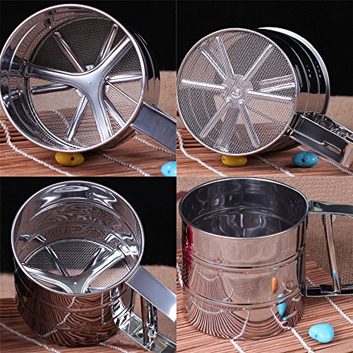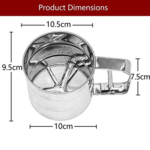 MENGCORE Baking Stainless Steel Shaker Sieve Cup Mesh Crank Flour Sifter with Measuring Scale Mark for Flour Icing Sugar