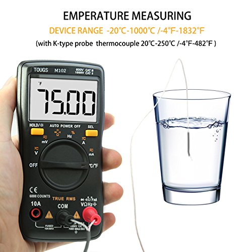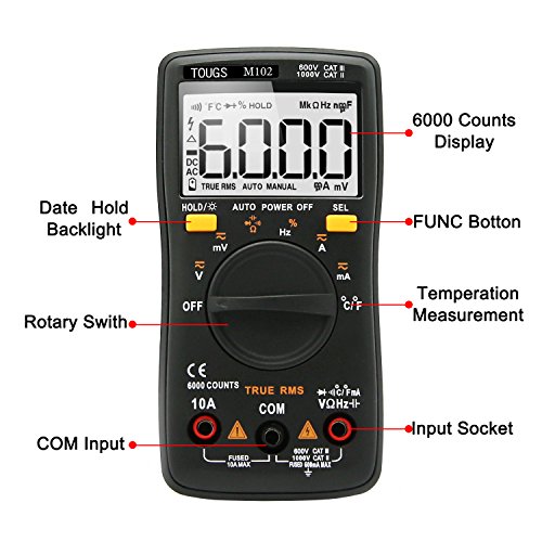 TOUGS M102 Compact True-RMS Digital Multimeter Auto-Ranging 6000 Counts Electronic Measuring Instrument Multi Meter with Self-Calibration Chip and Backlight