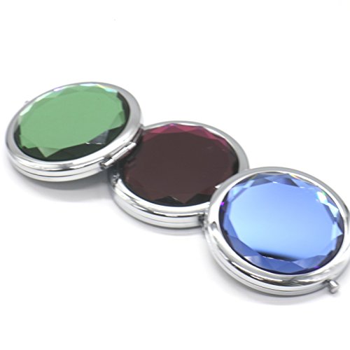 3Pack Double Compact Cosmetic Makeup Round Pocket Purse Magnification Jewel Mirror for Women Lady Girls