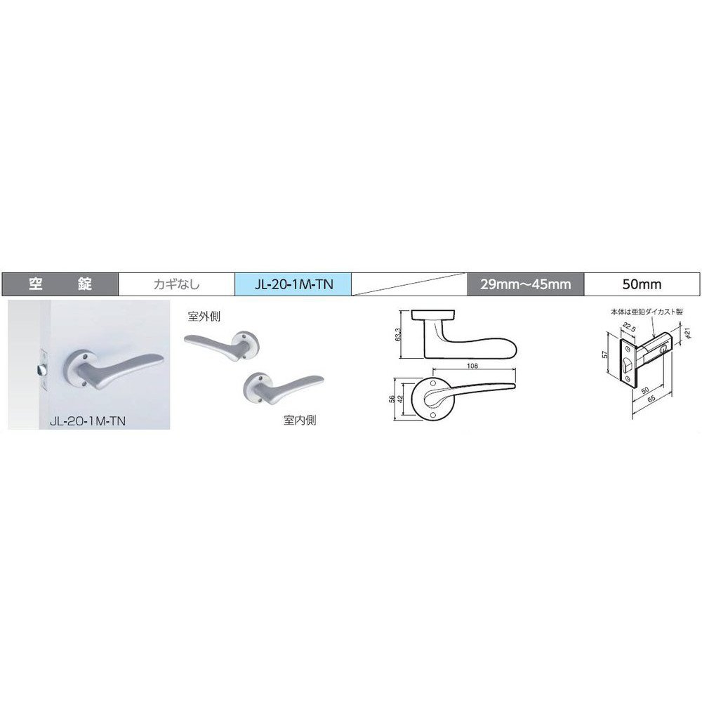 · Shape: 20 ● Seat Sign: 1M ● Corresponding Door Thickness: 29 ~ 45mm ● Seat · Function: Maruza Unlocked · Pack Set 50mm ● Finish: Painted Nickel (N) ● Body Size: Vertical 56mm × Horizontal 136mm × Thickness 63mm