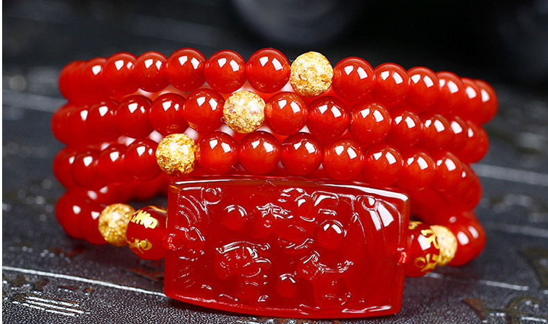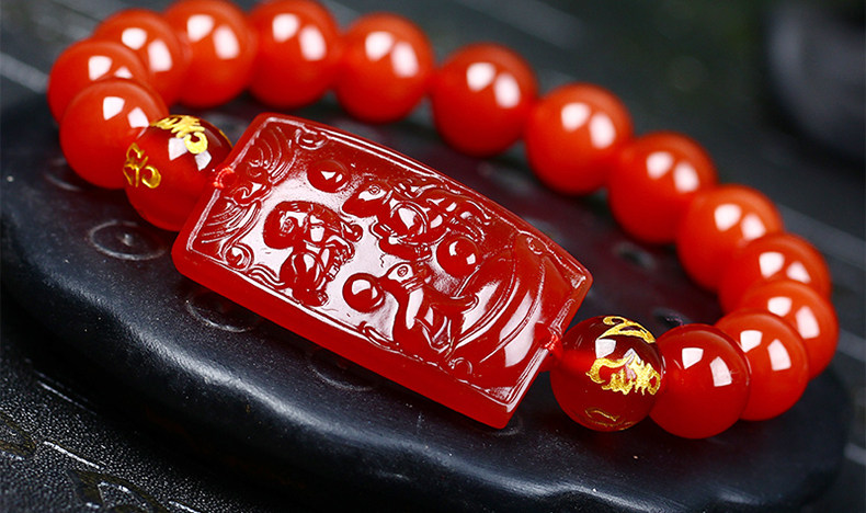 开光天然红玛瑙寅午戌三合开运手链化太岁生肖属犯太岁转运饰品