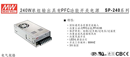 Mean Well SP-240-48 Enclosed Switching AC-to-DC Power Supply, Single Output, 48V, 0-5A, 240W, 2.0" H x 3.7" W x 7.5" L