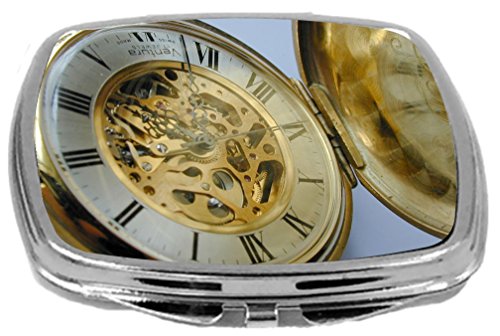 Rikki Knight Close-Up Design Compact Mirror, Gold Pocket Watch Macro, 3 Ounce