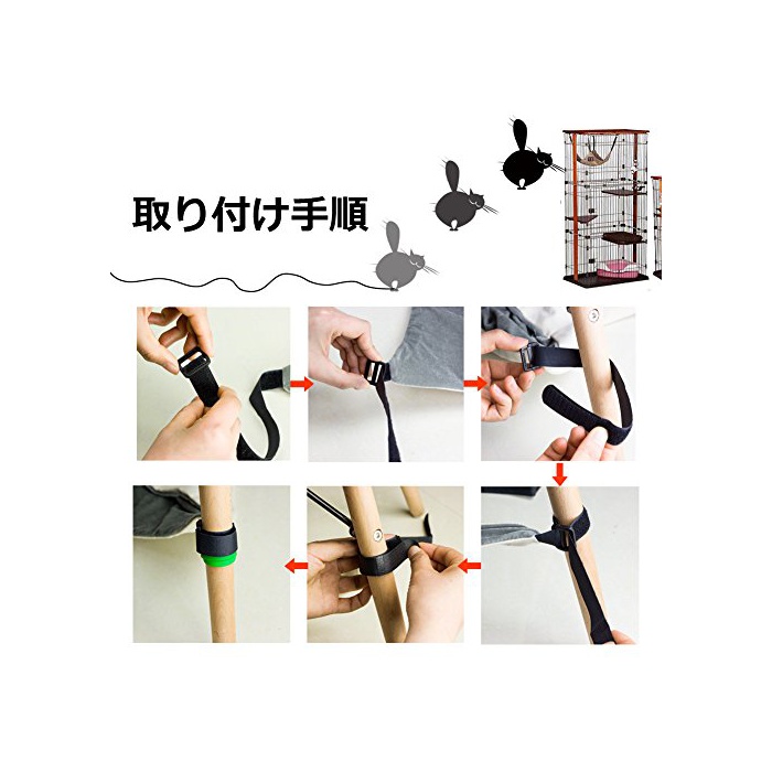 【특징】벨크로와 버클이 부착에,벨트의 길이가 조정에 옵니다.케이지나 의자 등의 장소로 간단하게 장치해 쓸만합니다.