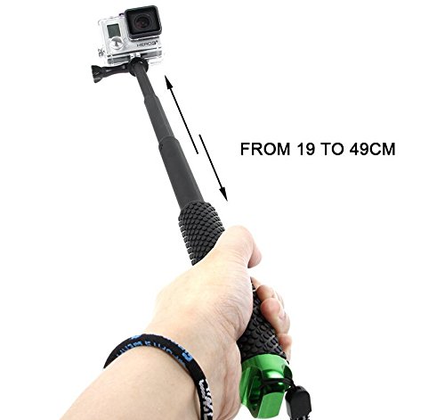 Rubby body with aluminum tube, extend from 19 to 49cm, perfect for traveling, video diaries, video blogging, hiking / camping, weddings, parties, the beach, concerts, aerial photos, sports events;