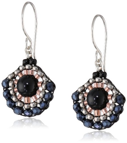 Miguel Ases Onyx and Hematite Small Fan Drop Earrings
