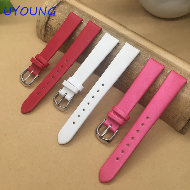 품질 실크 + 정품 가죽 손목 14 미리메터 숙녀 교체 시계 스트랩 조약돌 시간 라운드 여자