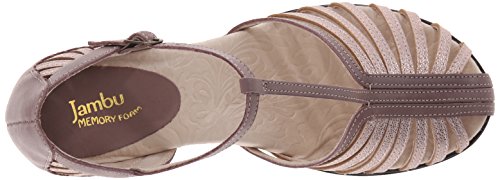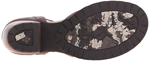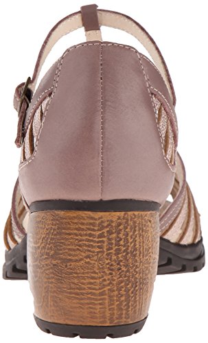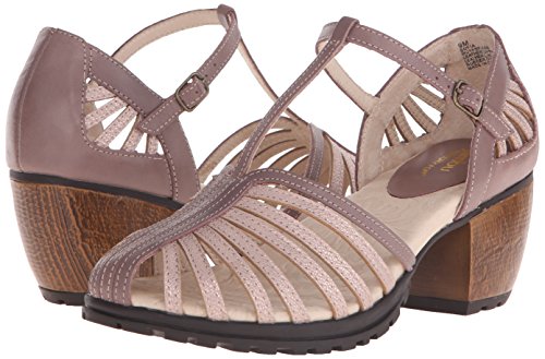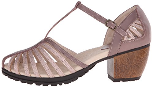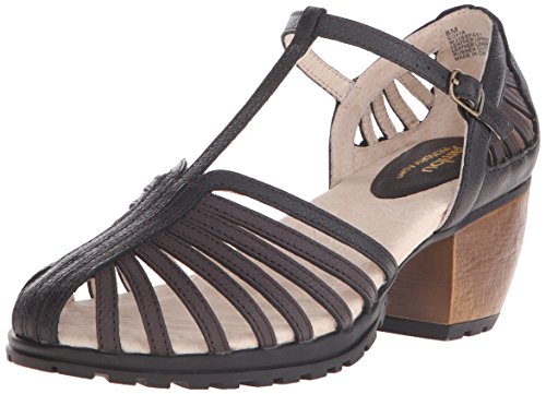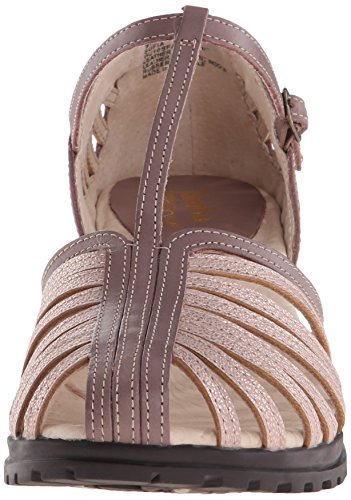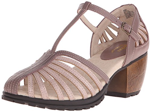 Huarache-inspired sandal featuring extended T-strap with buckle closure at side