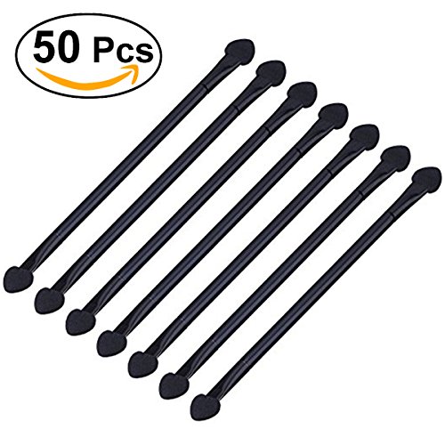 Frcolor 50pcs Disposable Dual Sides Eyeshadow Sponge Brushes Makeup Applicator with Long Handle 12 cm Black