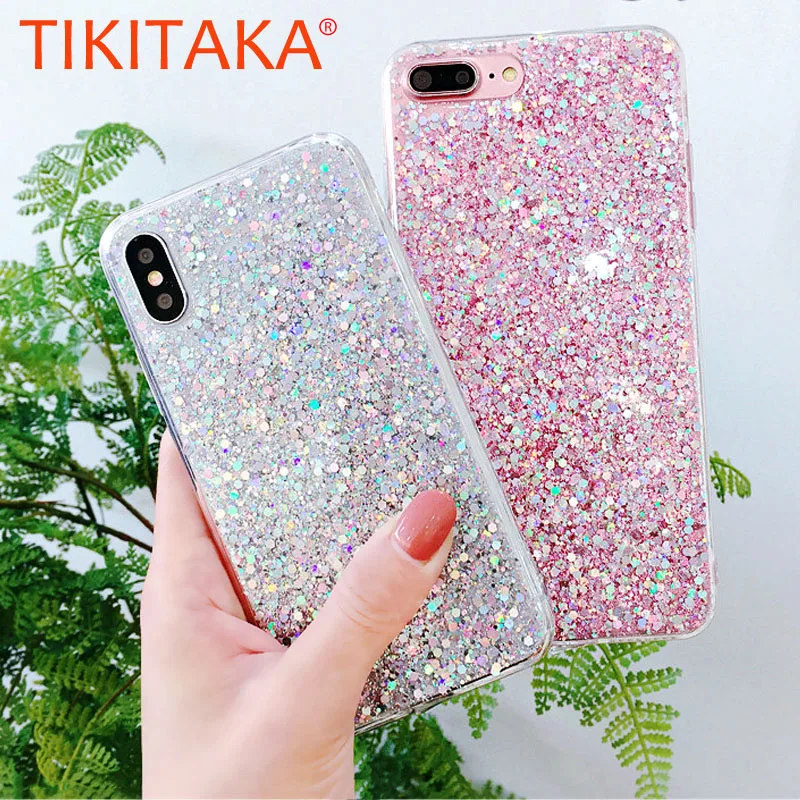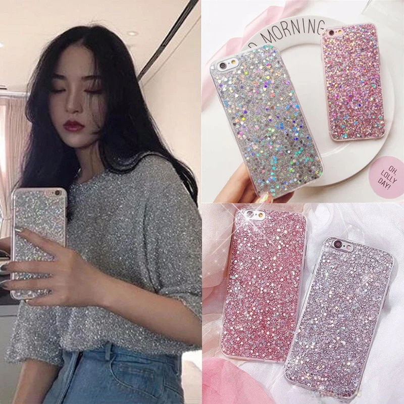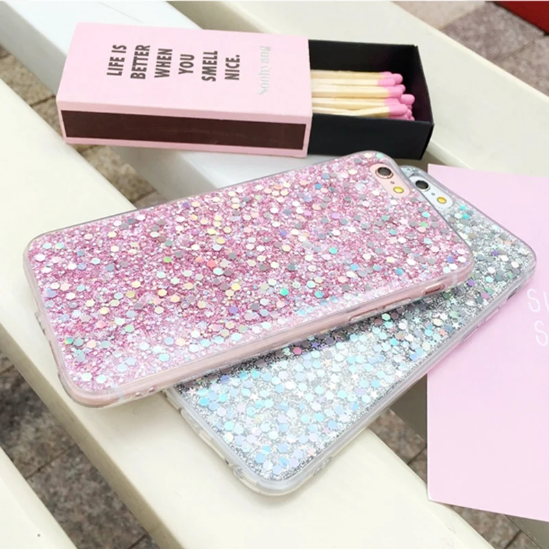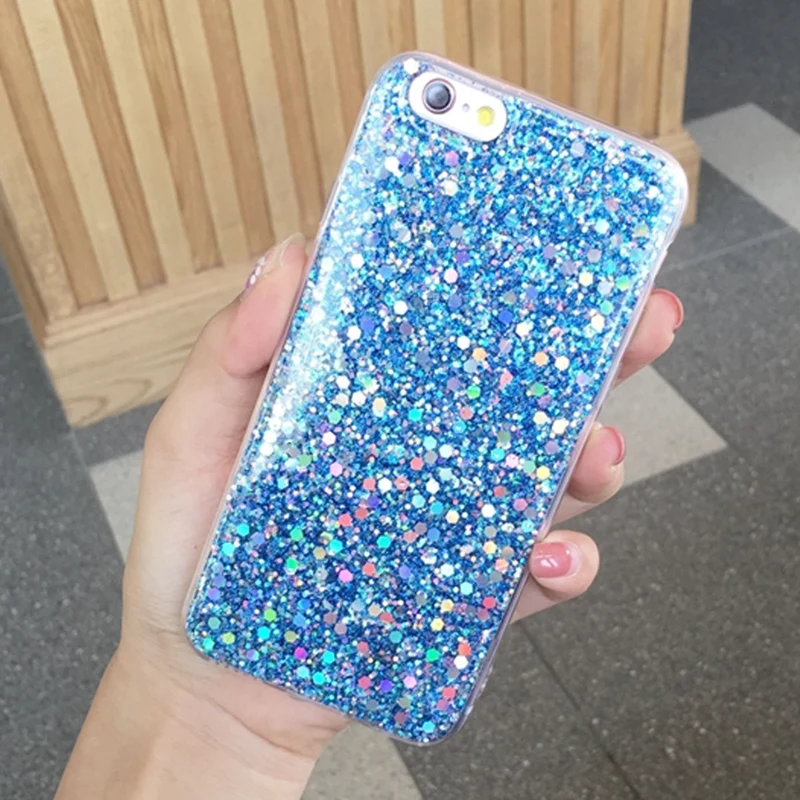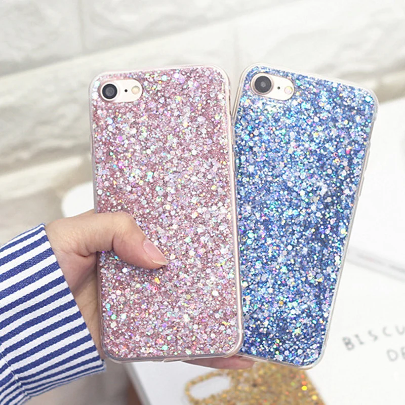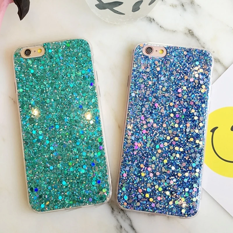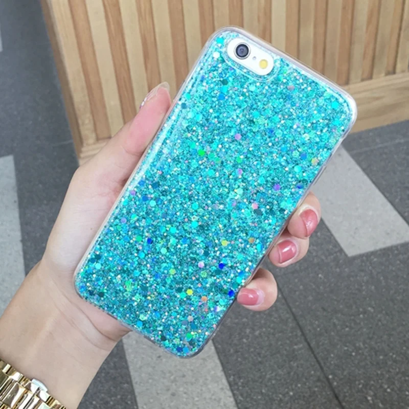 Features:Luxury Bling Flash Powder Sequins Phone Cases Soft TPU Back Cover