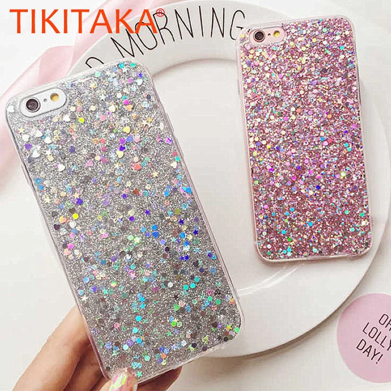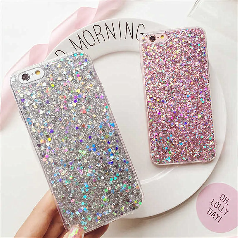 Style 6:Sparkling Color Heart Sparkle Glitter powder Bling Soft Silicon Fundas