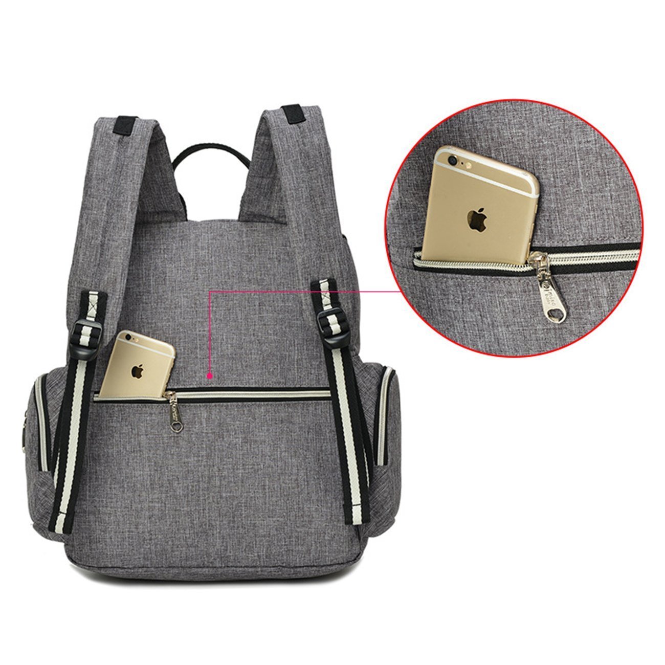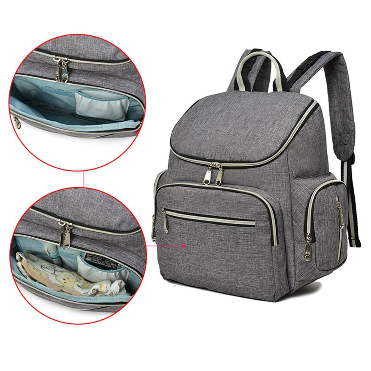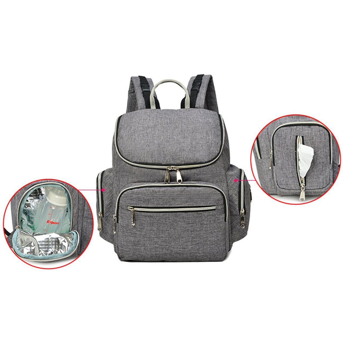 2 pieces Baby bottle storage pocket, 1 piece waterproof pocket, 1 piece back zip pocket, 1 piece pacifier pocket, can store a set of essential items of newborn baby mum.