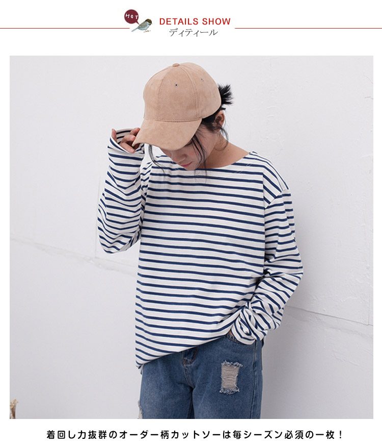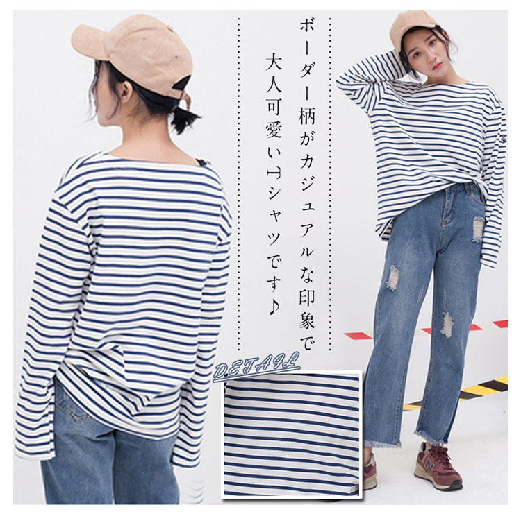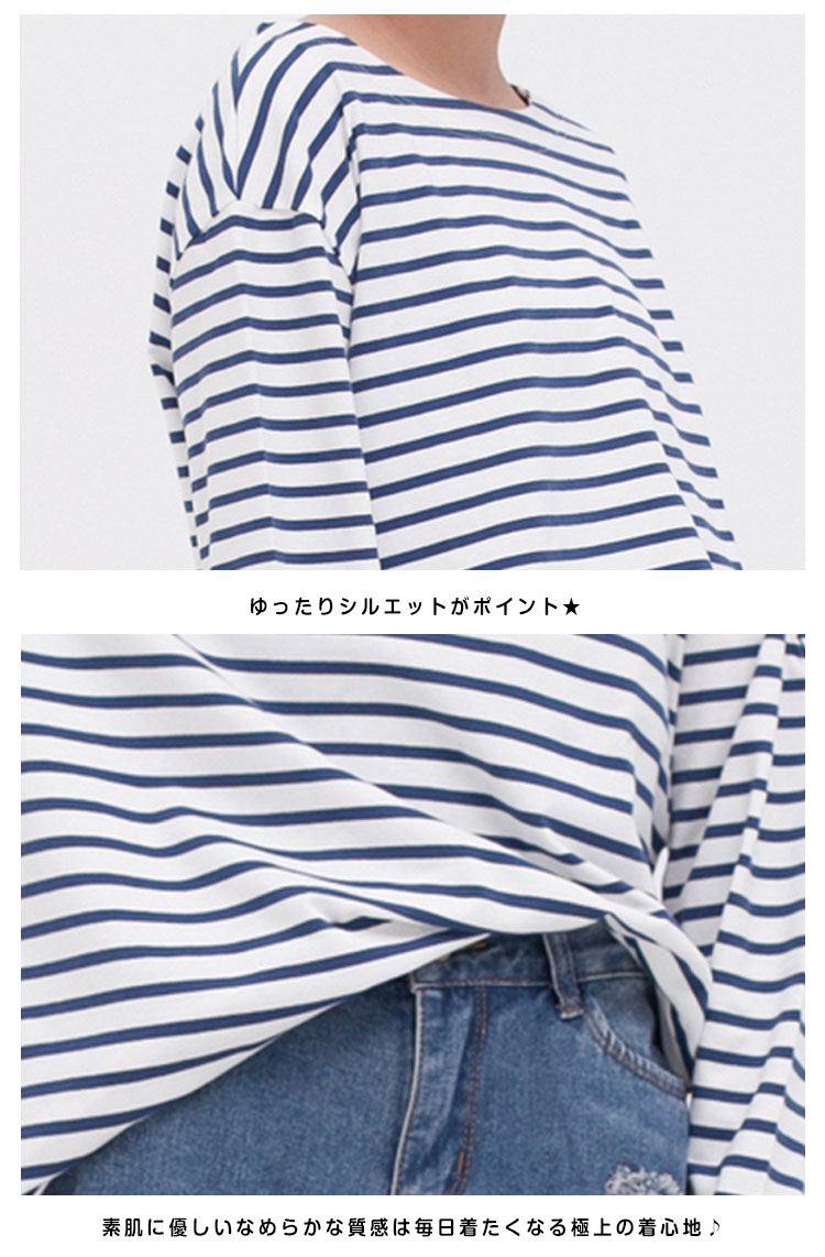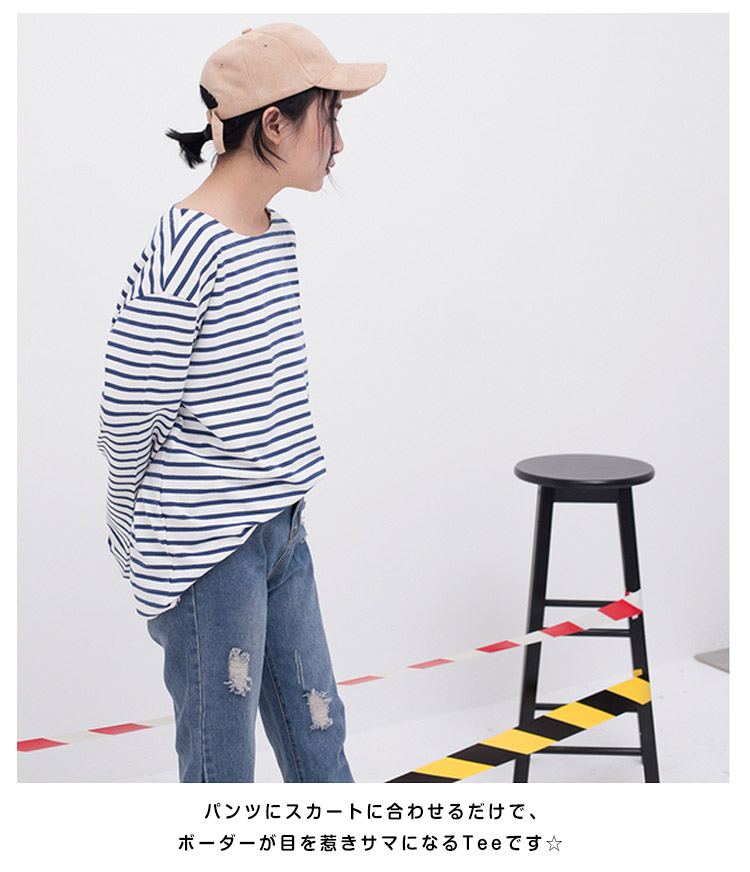 | ボーダー柄がカジュアルな印象で大人可愛いTシャツです♪柔らかいコットン生地で着心地もさらっと気持ちいい!パンツにスカートに合わせるだけで、ボーダーが目を惹きサマになるTeeです☆ 一着持っているだけで着まわしが出来るTシャツは毎日使いになること間違いなし♪ | |