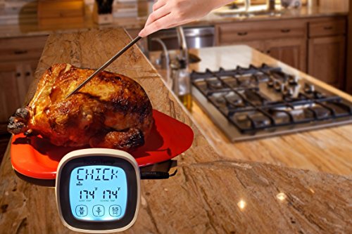 LEAVE-IN MEAT THERMOMETER- TIMER is pre-programmed with settings for beef, steak, pork, chicken, fish, lamb, and veal ideal as a kitchen turkey or roast thermometer