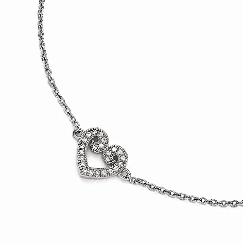 -. Title : Sterling Silver & CZ Brilliant Embers Polished Heart Anklet w/1in Ext