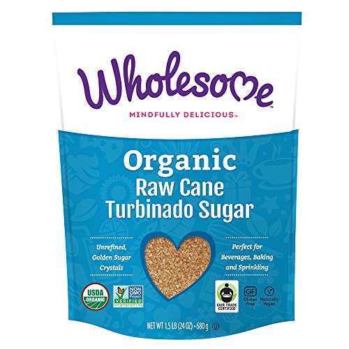 Wholesome Sweeteners Fairtrade Organic Turbinado is a golden-coloured raw cane sugar with large sparkling crystals and a rich aroma. Organic Turbinado is the ultimate topping for cakes, cookies, muffins, crumbles, pies, and crème brûlée. It makes a wonderful start to the day when sprinkled on cereal and oatmeal or when blended into fruit smoothies and cappuccino. Find more great uses for Organic Turbinado at www.wholesomesweeteners.com. Fairtrade Organic Turbinado is made by crushing the freshly-cut sugar cane to squeeze out the juice rich in vitamins and minerals. The cane juice is evaporated and spun in a turbine to produce the large sparkling golden crystals. The Fairtrade Certified logo is Wholesome Sweeteners' guarantee that our farming cooperatives are paid directly for the cane grown and milled. This means that farmers can compete with factory farms, cultivate the quality of their crops, send their kids to school and build thriving communities. Thank you for choosing Wholesome Sweeteners and helping to make the world a sweeter place.Feature