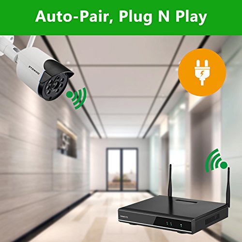 【Auto-Pair Wireless, Cameras are not Battery Powered 】-- Cameras will auto pair to NVR recorder, there is no need to hook any video cables from the cameras to the NVR video recorder, but cameras are not battery powered, each camera has a power supply with around 10 feet of power cord, and they will need to be plugged into a power outlet nearby.