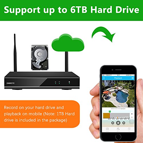 【Easy Remote Access, Expandable Storage Capacity】-- Easy live view on your smart phone from anywhere anytime; receive alerts when motion is detected. Support up to 6TB hard drive, 1TB hard drive is pre-installed, record 30+ days under motion detection recording mode