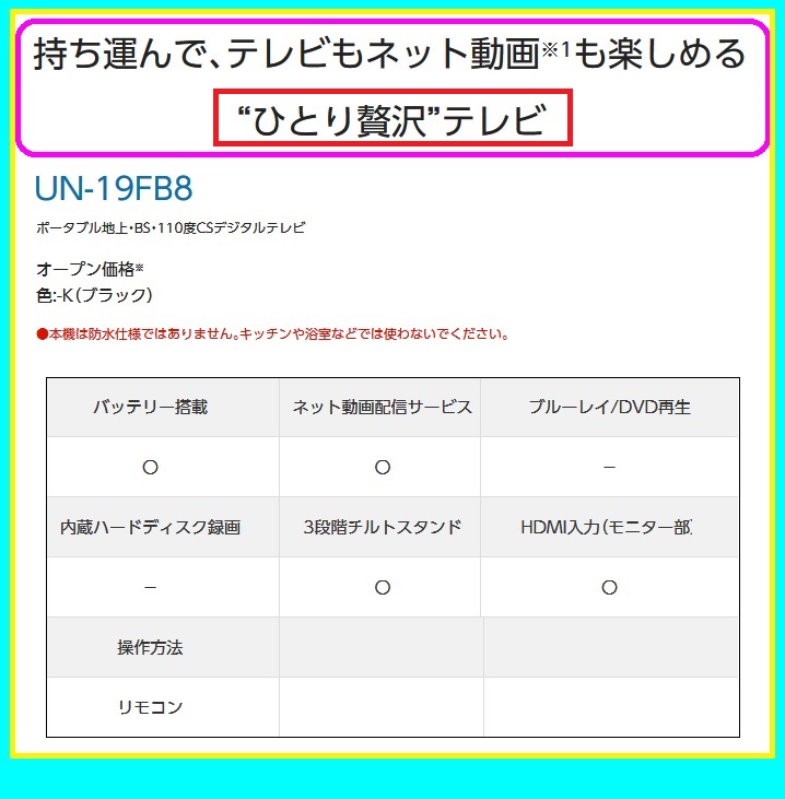 ●付属品:【チューナー部用】ACアダプター、mini B-CASカード、【モニター部用】ACアダプター、【チューナー・モニター部兼用】リモコン、単3形乾電池(2本)