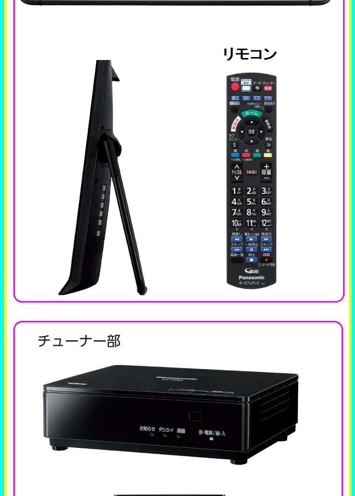 ●AV・電源方式:充電+AC電源モニター:充電、AC電源、チューナー:AC電源