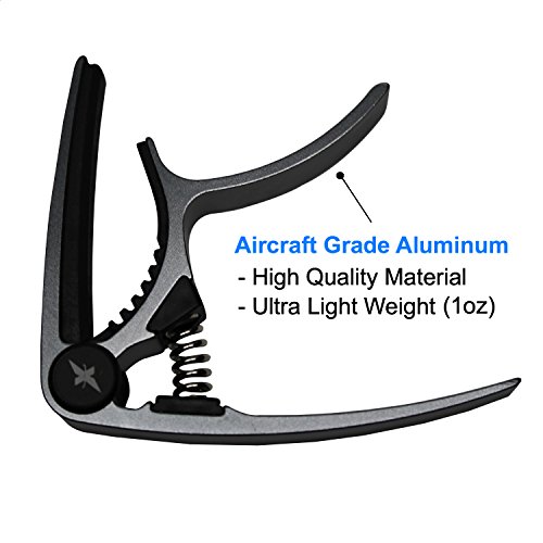 ✔ BUILT TO LAST - Made of Lightweight Aircraft Grade Aluminum Alloy Metal. This Ultra Lightweight Professional Capo Comes with a LIFETIME WARRANTY